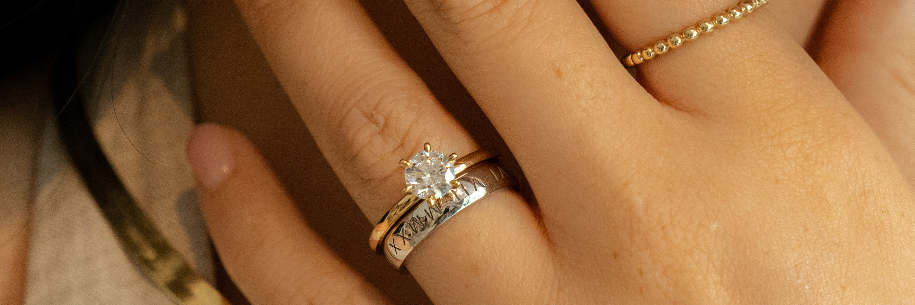 "I wanted something to represent my children that I could wear along side my bridal set. The roman numerals represent each child's birth year (XV, XVI, XX). It sits perfectly between my engagement ring and eternity band. It's the prefect finishing piece to the set."